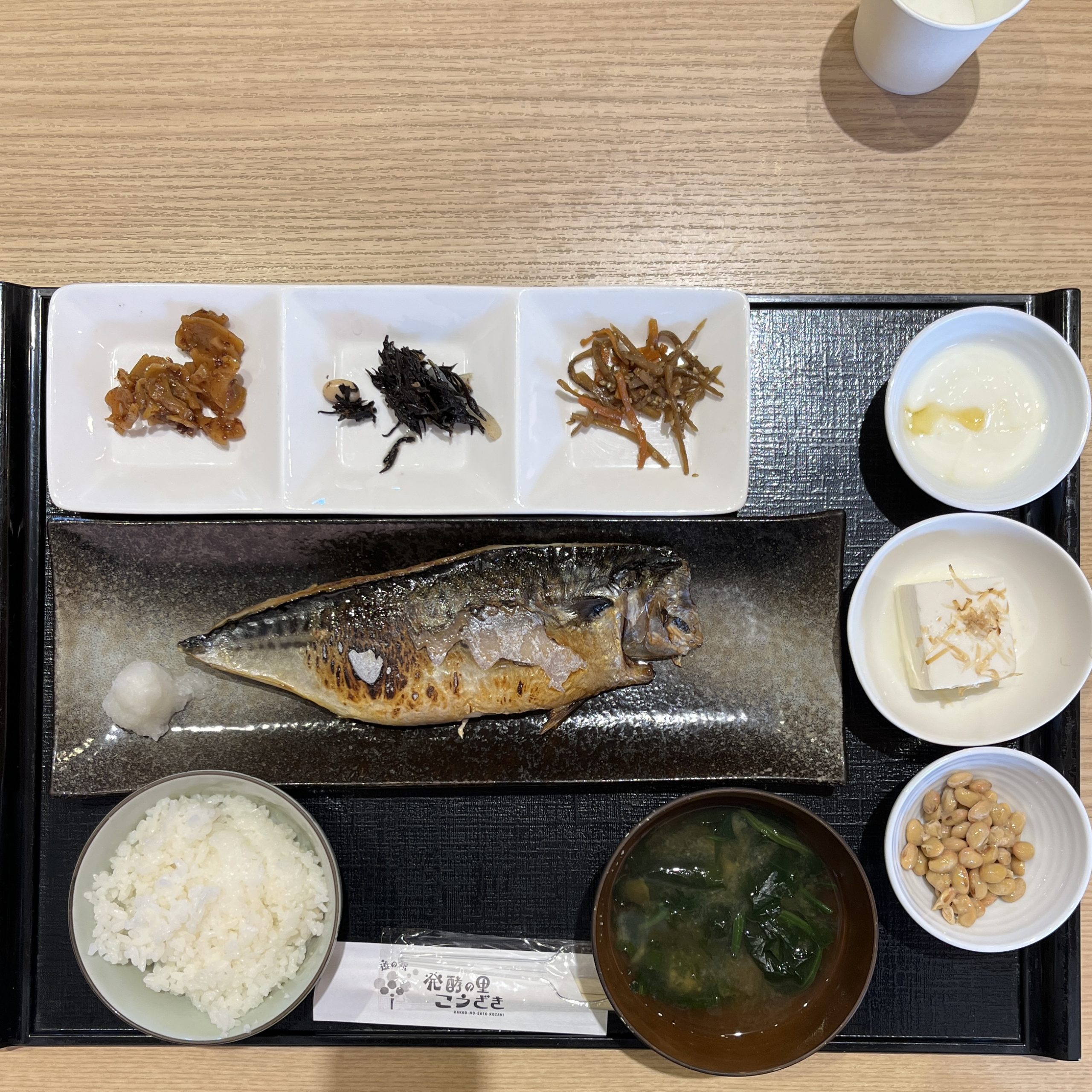 鯖の塩麹、納豆、ヨーグルトと発酵食品がたくさん。